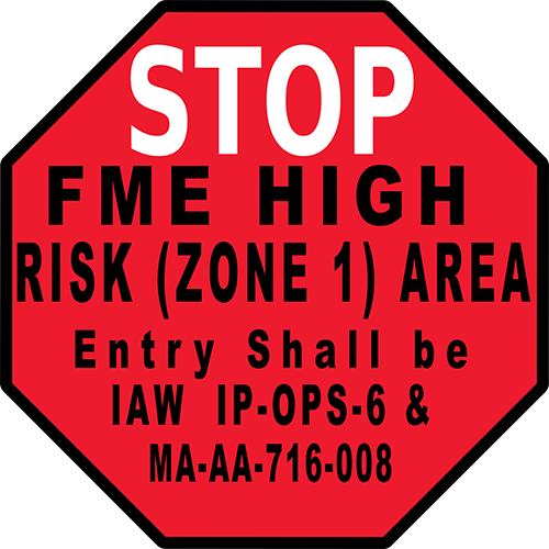 Stop FME High Risk floor sign - perfect for lean manufacturing, OSHA facilities, machine shops and more. Available in 12", 16", 24", 36", 48" sizes.